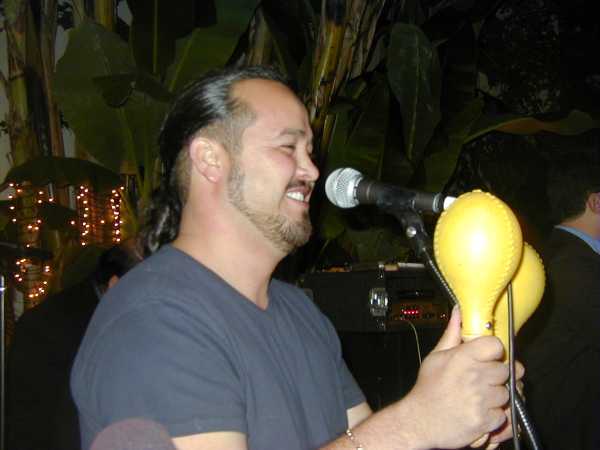 Jim, our "sound reinforcement specialist" (the guy who pushes all the dials), in a typical moment on the job |